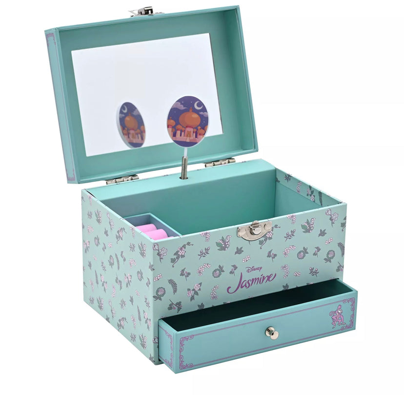 Bring the magic of Disney to a room with the Princess Musical Jewellery Box - Jasmine. This enchanting jewellery box, adorned with a floral pattern, is a perfect for storing treasured trinkets. With a drawer for small keepsakes and a cheery tune that plays when opened, its an ideal gift for Disney princess enthusiasts.