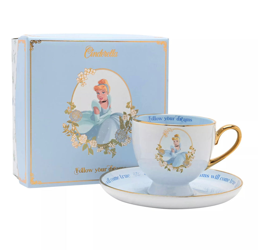 Each Tea Cup & Saucer set showcases a delightful portrait of the iconic princess, surrounded by intricate floral designs. Brighten any morning with this charming teacup, featuring an uplifting message printed on the cup.